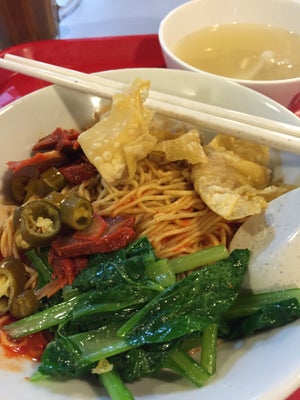 Pontian wanton mee is my favourite wanton mee. What I like about their wanton mee is the mee (noodles) as it springy and it doesn't become soggy even I take away it. But the portion is too small, so sometimes, I would add noodles. There is ketchup, chilli, black sauce base for the mee. I always choose only chilli. I love their chilli as it is slight spicy and sweet. The cha siew is thinly sliced, hich I like as I don't like too thick cha siew. I always choose the soupy wanton, as I find the fried one too oily. Don't really the wanton as it is too small, and very little meat in it. …查看更多