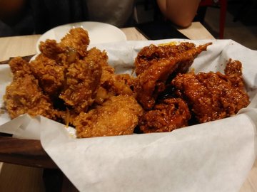 1) We tried the crispy fried half chicken with the compliment of two flavours, namely the garlic and spicy sauce. The chicken came with very crispy coated flour, the chicken meat was juicy and tender inside. The sauce was great too. Yummy!!! S$17.002) We also ordered the crispy coated with flour mushroom slices. It tastes fantastic. - S$4.00The bill was S$21.10 without any GST charged.#choochoochicken…查看更多