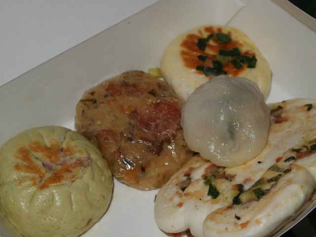 At the AMK Hub Shopping Mall, there is takeaway outlet which sells various paus and dim sum.Its signature pau is the pan fried paus which comes in 3 different flavours. It is a popular snack in various China states like Shanghai, Su Zhou and Jiang Nan. The pau is pan-fried with Olive Oil, which is a healthier choice than the traditional way. The pau is handmade. Crisp on the outside yet soft upon every bite. Each piece costs $1.30. Every order of 6 pieces, one will get one piece additional piece free. The paus are pan fried upon order. It is then packed into a white box.Smells so nice and hot.Signature Seafood Vege Pan Fried BunIt is filled with prawn, fish and cabbage. The seafood paste is not a lot inside the bun. Mostly vegetables. I like the tasty vegetables.Signature Pork Pan Fried BunIt is filled with pork and water chestnut. It tastes a bit fatty but the crunchy with the water chestnut.Signature Chicken Pan Fried BunIt is filled with chicken and mushrooms. The chicken is minced too finely here, but I still bite into the bits of mushrooms.Overall quite tasty and filling. I could not finish half of it.…查看更多
