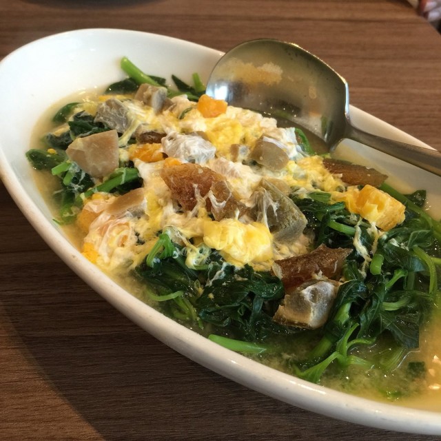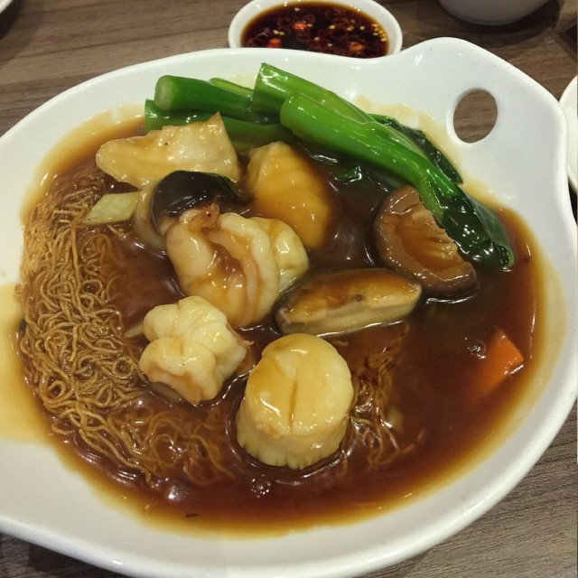 My family wanted to dine in another Dim Sum Restaurant in the same shopping mall but there was very long queue. Hence, we went to Crystal Jade Dining Place to have Dim Sum instead. The dining area was cosy and premium look, though I felt the lighting was slightly dim for dining. The staffs were very attentive, it seem that a staff was assigned to a table ready to refill the tea or clear the used plates. Everytime a new dim sum came, we were given new plates.We ordered some Dim Sums and a plate of Fried Carrot Cake. The Fried Carrot Cake had "Wok Hei" aroma but the texture of the carrot cake was soft and mushy. The carrot cake though looked dark in colour, it was actually quite spicy. The Dim Sums such as Steamed Prawn Dumplings was good, it had fresh and spingy prawns. The Steamed Pork Ribs was average and not meaty. I felt that the marinate using fermented beans was only on the outer layer of the meat. Their chilli was very good tasting. The chilli was more of the spicy fermented bean taste with heavy saltiness. The staff told me that they are not selling the chilli separately.Overall, the Dim Sums here was average taste. I liked the Steamed Prawn Dumplings but not the rest.…查看更多