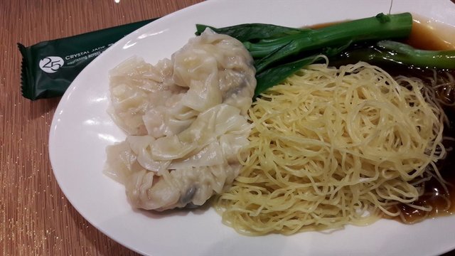 I have never failed to enjoy their Wanton Noodles / Shrimp Dumpling Noodles. This is only available at Crystal Jade Kitchen outlets.The Wanton Noodles, dry (SGD$8.80) is tossed lightly in oyster sauce, and served with 4 large wanton (minced meat dumplings) as well as vegetables. Noodles are springy and moist; flavour is good and the wantons are made of tender minced pork. Portion is good, even for bigger eaters.The Shrimp Dumpling Noodles, dry (SGD$9.80) consists of the same springy noodles tossed in dark oyster sauce and is served with vegetables as well. The shrimp dumplings are huge and made with fresh prawns giving it a buoyancy; strips of black fungus inside the dumpling give it a delicious crunch.For full review and more detailed information, please feel free to visit:http://thearcticstar.blogspot.sg/2016/04/wanton-noodles-at-crystal-jade-kitchen.html…查看更多