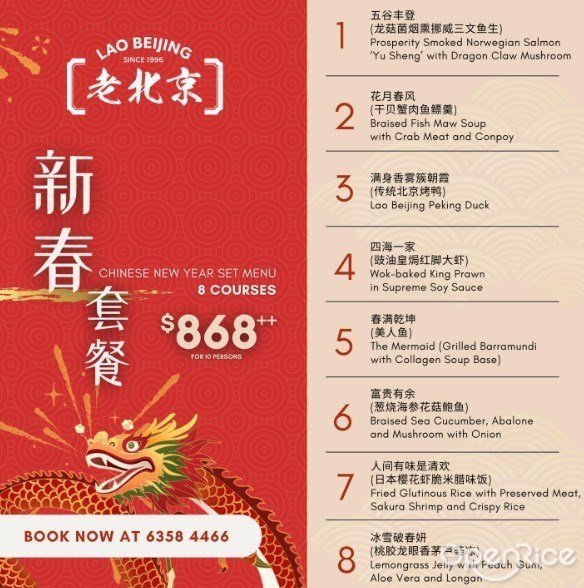 老北京食堂 (新加坡) 網址: https://s.openrice.com/eKbSB01t1C000 地址: Square 2, 10 Sinaran Drive, #02-76/84, Novena, Singapore 電話: +65 6358 4466