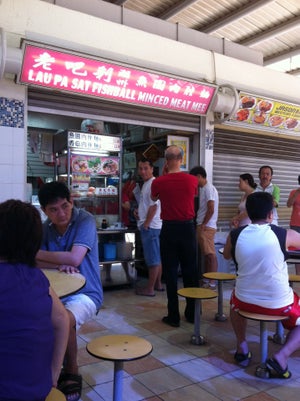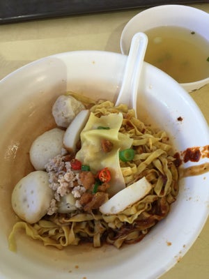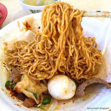 Full post : http://dairycream.blogspot.sg/2015/09/lau-pa-sat-fishball-minced-meat-mee.htmlJust as most people will bee-line for Chao Zhou Fishball Noodle, I thought Lau Pa Sat Fishball Minced Meat Noodles is also another unexpected good find in the hawker center. There were only two options; either Fishball minced meat or Mushroom minced meat at $3/$4.It was a quick decision for me to pick the Fishball minced meat noodles since the stall was named after it.The Mee Pok here is thinner than the average Mee Pok and could easily be mistaken as yellow noodles.Yet they were fresh and toothsome, perhaps even outshining the classic meepok. There was no trace of vinegar but the punchy chilli and soy sauce contributed to a tremendous bowl that caught me swooshing up the noodles in delight.A wild fistful of cilantro, pork liver, minced meats and crispy pork bits made for a nice recalibration of the palate. But what I liked most is the generous addition juicy shrimp dumplings and He Kiao, which is less visible in bak chor Mee these days.The only problem seemed to lie in the fishballs that were not very springy. But nonetheless, it's a very huge and satisfying bowl that sustained my enthusiasm right to the end.Must Tries…查看更多