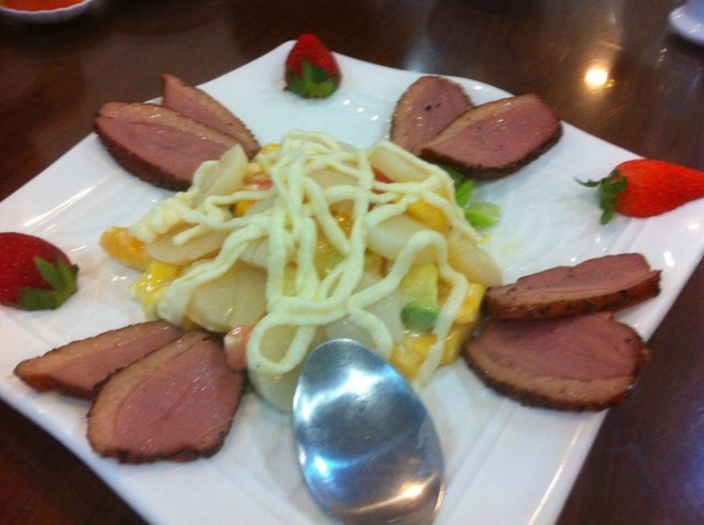 First time try this reataurant. It is located near ntuc learning hub, under housing blks. There are two sections - non air con and air con. We reached at Ard 5 smthing close to 6pm, we were the first customer. We actually wanted to order the $98 set menu. But they say they dont have that, and insisted only have the mother's day set menu;( that is not very customer orientated;( We order the Mother's Day set menu for 4 pax @$168. 1) smoked duck w scallop mango salad The smoked duck was supposed to be black pepper flavour. But the black pepper taste is nowhere to be found. this appetiser is indeed refreshing with the mango salad. Scallop wasn't too bad too. 2) steamed egg white topped with fish maw and shredded chicken My sister distributed this dish to us. Guess I am lucky or unlucky, didnt get the shredded chicken. The shredded chicken is in small quantity. The egg white was not smooth. And the fish maw soup is not thick as well. It was an average dish. And quantity is small. 3) 10 head whole abalone and ringed conpoyIt came in nice presentation. Thick slice of melon encompasses the dried scallop, with abalone sitting around them;) Taste wise, is really average. Abalone is kind of bland. Sauce is light as well. The only good thing is that the dried scallop is not as overly cooked.4) prawn coated with milk and butter Pathetically small! Didnt managed to bring out the taste of this dish. Not flavourful. It's very average. 5) noodle with spring onion and gingernoodle is the mee kia type. and has a strong "kee" smell.. Definitely is a spoiler to the whole set menu. 6) abundance 5 gems desserts Not too sweet and thick. It suitable for me who doesn't like sweet things. Good thing is they throw in a free 1/4 suckling pig for this mother's day set menu. My sister say the suckling pig has a very strong "PIG' smell, its not crisp to the point as well.Overall, I feel the food in zi yean are average. And is not on the "will revisit" list.…查看更多