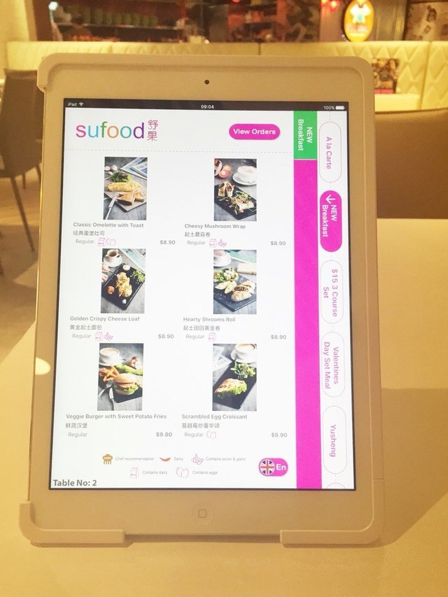 This is the second outlet of SuFood. It is known for its vegetarian food. This outlet is located at Wheelock Place. Comparing to the first outlet, this outlet offers casual dining, offering breakfast set, value 3 course lunch set and 5 course dinner set. This outlet is decorated in open concept style, with dim lighting.Today I decided to drop in for its value lunch set. For $15++, it consists of a choice of salad or soup, a choice of main course and a choice of drink. It is available daily from 10am to 5pm. Different from the first order, order was taken using the iPad. There was no hard copy of menu.Classic Garden Salad An assortment of fresh leafy greens served with a creamy homemade Caesar dressingThe lunch set came with complimentary Classic Garden Salad. The greens was crunchy and crispy. Nicely balanced with the creamy sauce.French Onion and Cheese Soup ($6.00 a la carte)Sweet onions and shredded Mozzarella cheese stewed into a rich-tasting soup topped with toasted bread.It was rare to find french onion soup in a vegetarian restaurant's menu, as this soup was usually made with beef broth. The soup was rich and sweet, lots of caramelised onion slices in it.Homemade Vegetable Calzone ($15.00 a la carte)Broccoli, mushrooms and artichoke sautéed in a fresh basil pesto sauce with parmesan cheese, folded in a doughy pizza base and baked until golden.To handle the dish using fingers, one was given disposable glove without dirtying fingers. Inside the pizza, it was filling with well cooked mushy vegetables in minty sauce. The pizza was quite huge in serving and I could barely finish it.Iced Latte ($4.50 a la carte)The drink was refreshing and milky in taste.Overall the lunch set was quite filling that I could barely finish it. Although it was vegetarian, but I felt that it was quite tasty too. I did not miss meat abit.…查看更多