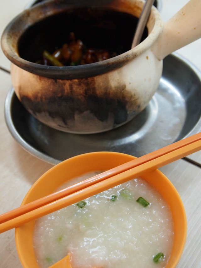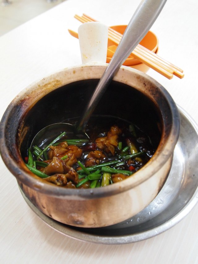 I tried once over at Geylang and i liked it. I was happy to spot this stall in this coffee shop and decided to have dried chilli frog leg for $8 and the porridge for $2. The dried chilli frog leg was a bit too spicy to my liking. It was alright initially but a lot of chilli padi right at the bottom of the claypot so it turned out to be really spicy. The level of saltiness was just right to go with the plain porridge. …查看更多