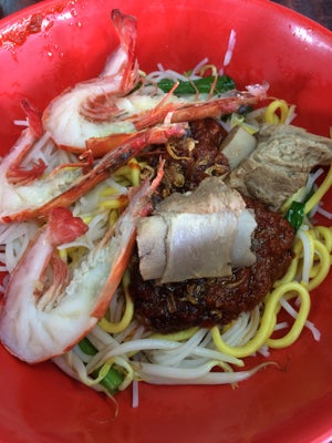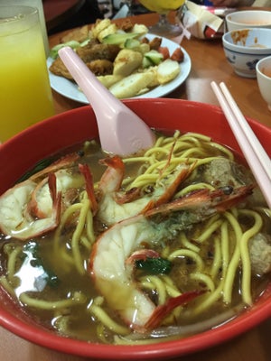 This prawn noodle eatery has an old school and traditional vibe, however, I am not too sure about its history and establishment.Prawn noodles is the main dish while there are a different combination of pairings too. Ngoh Hiang were available as sides too.I had Prawn Noodle with Pork Ribs ($5.50) and Calvin had the Prawn Noodle with Pork Ribs and Ox Tail ($6.5). I can't remember the exact pricing, however it's roughly there about.Frankly, my taste buds aren't that sharp in identifying a good solid bowl of prawn broth. Having said that, this was definitely rich with prawn essence.I did enjoy my meal over here.More pics and thoughts at http://lepakwithyaops.com/famous-geylang-prawn-noodles-along-upper-paya-lebar-road…查看更多