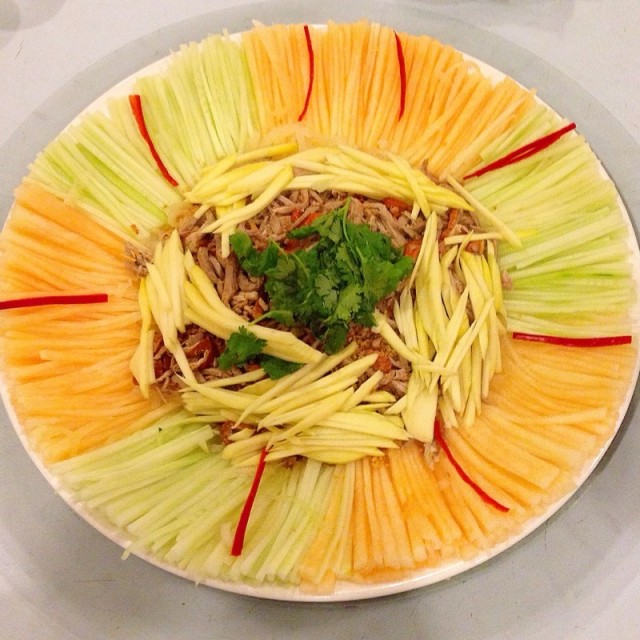 Duck with mango salad
