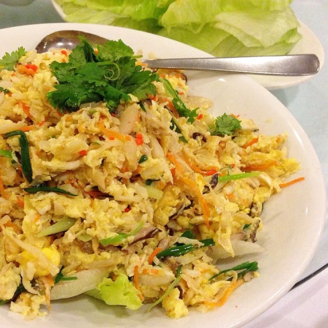 Crabmeat scrambled egg with lettuce