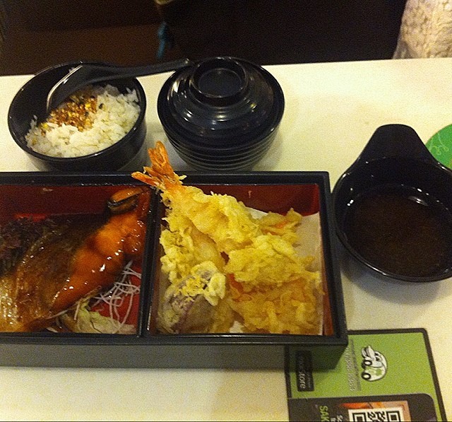 Salmon teriyaki and tempura bento