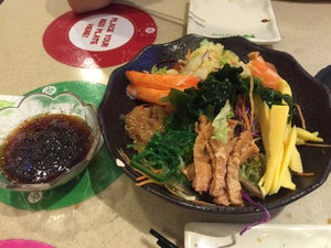 Kimchi chicken hot pot 16.99. The soup base was well flavoured with kimchi and there were tender chicken, soft cabbages, tofu etc in it which were quite nice. Katsuo Sashimi 6.29. I've never tried this before so I decided to try it. The fishy taste was stronger and more distinct. This is something different from the usual sashimi. Soft shell crab hand roll $2.29 - the seaweed was crispy and the soft shell crab was not soggy nor oily :)…查看更多