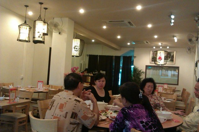 For pictures and full review, pls visit:http://madamechewy.com/2015/02/20/wan-he-lou/I’ve always wanted to visit Wan He Lou to try their famous Lobster Porridge so when Amex had its 30licious promotion last November, I made a reservation right away. On a side note, I do hope that Amex 30licious promo will continue, so we foodies will have something else to look forward to apart from Restaurant Week.Located in the heart of Jalan Besar, Wan He Lou’s surroundings is rather run down. Thankfully the restaurant itself is presentable and clean. Service was sometimes non-existent (as all the staff went to the kitchen) but their friendly demeanor made up for this.Wan He Lou was well-prepared for the promotion; our dishes arrived shortly after we finished munching on the addictive Wasabi Macadamia Nuts.Chef Style Smoked Duck did a good job of whetting our appetite with its engaging balance of sweet and savory. This could have been better of the meat was more tender.Wan He Lou Golden Seafood “Pot Sticker” was nicely pan-fried, with crisp skin encasing juicy seafood and vegetable dumpling.Honey Tangy Pork Choplets were too tough for our liking.The Green Dragon Vegetables were caught us by surprise. The greens were sweet, succulent and crunchy. We certainly didn’t expect this humble vegetable dish to so enticing!The Signature Lobster Porridge is prepared Teochew style. There’s no doubt the delectable broth was the star; the robust umami soup warmed our tummies and souls. The rice was cooked till comfortingly soft, infused with the broth’s flavors. Unfortunately, the crustacean itself was bland and boring.We ended our meal on a sweet note with Black Glutinous Rice with Yam Ice Cream.Overall, we felt the food was alright and the standard was average. Wan He Lou also offers wide variety of Asian classics and favorites at reasonable prices, making it a suitable venue for family gatherings.…查看更多