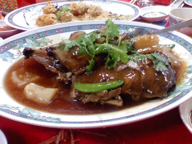 Last sat the family attended the Chinese New Year dinner organized by Sembawang Community Centre. The 8 course Chinese style sit down dinner was catered by Ban Heng.Good Luck & Prosperity Yu Sheng 鸿运鱼生Mock abalone slices was used here which was a good choice especially these days everyone was avoiding raw fish.Shark's Fin Soup with Crab meats 金银展翅There was lots of chunks of crab meat in the soup. The soup was rich and flavourful.Steamed Live Sea Bass in Hong Kong Style 年年有余Quite a huge piece of fish. Quite meaty and fresh.Braised Chicken with Chinese Herbs 彩风迎春My favourite dish tonight as the chicken was fork tender and the soup was very flavourful.Mixed Vegetables in Lo Han Style 罗汉烩上素The cabbage was well braised and very soft in texture.Braised 'LingZhi' Mushroom with Spinach 灵芝菇扒波菜Another well cooked vegetable dish. The huge mushroom slice was very tender.Boiled Live Prawns 龙马精神The prawns were fat and juicy.Lotus Leaf Rice 长年益寿It looked like fried rice with the dried sausage and dried shrimps, wrapped in lotus leaf. A bit too salty in certain parts. Not balance in taste.Chilled Longans & Pineapples 龙凤呈祥Looked like something straight out from the cans.Overall the food was not bad especially when it was catered for 1280 people. Drinks was refilled often.…查看更多