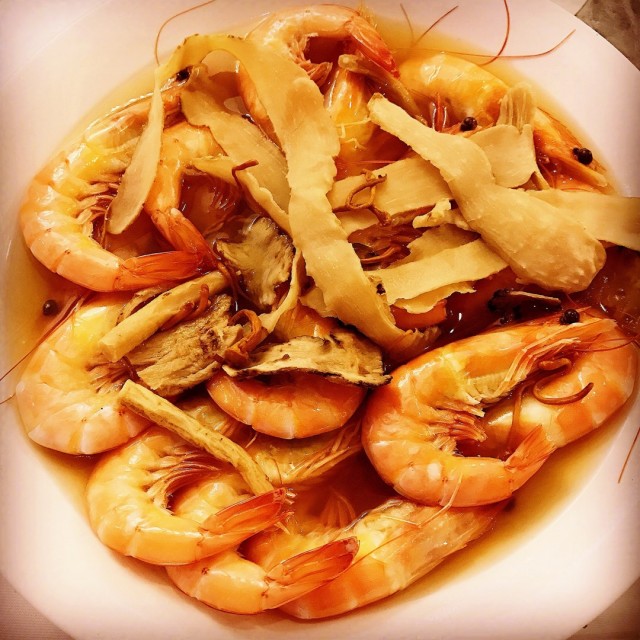 Poached Live Prawns with Chinese Herbs & Cordyceps (虫草滋补药膳活虾)