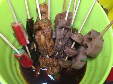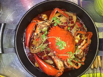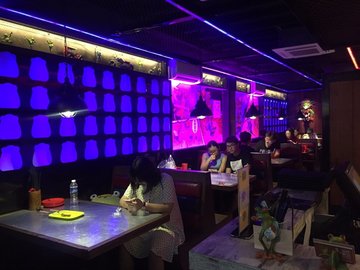 The restaurant which was located just above the MRT station. It looked small from outside but it had 3 and half floors of dine in area. The place was decorated with lots of frog figures and pictures around. Very colorful looking. The restaurant offered bull frog cooked in 10 different flavours in both soup or grilled type, served over charcoal stove to keep warm.Spicy Bull Frog with Soup 泡锅牛蛙香辣味 ($39.80) Level 3 spicyAlthough it was one of the first dishes to be served, but it turned out to be the crowd's favourite tonite. The frog was surprisingly tender and juicy. One could also add on vegetables such as Potatoes ($3.80), Black Fungus ($3.80) and Golden Mushroom ($4.80) to soak up the soup's flavours.Pickled Mustard Bull Frog with Soup 泡锅牛蛙外婆酸菜味 ($39.80) Level 2 spicyAlthough listed as a spicy dish, most felt that it was more on salty side and lacking of sour taste from the pickled mustard. The soup while a tab too salty was good to go with plain rice. Similar to the above dish, the frog meat was very tender and juicy.Special Pepper Bull Frog 怪椒味平锅牛蛙 (S$39.80)Level 3 spicyIt was similar to grilled fish. As the frog pieces went through a frying process before adding into the dish, one could not help but felt that the dish was much drier and oily when compared to the soup version, with the frog tasted more drier and less juicy too.Spicy Hot Grilled Fish 招牌烤鱼 (S$35.80) Level 1 spicyAlthough it was a level 1 spicy, but one felt that there was no much different from other dishes. there was no wow factor in this dish.Fresh Crab with Shrimps in One Pot 虾蟹一锅 (S$38.80) Disposable gloves and tool were provided. Sri Lanka mub crab was used for this dish. Although there was no spicy level indicated on the menu, I felt that the spicy level was similar to the fish and bull frog dishes. Barbecue Mutton 烤羊肉串 (S$1.20/ stick)Served on metal stick, the meat looked a tab but was quite tender and flavourful without any gamey taste.Barbecue Chicken Mid Wings 烤鸡翅 (S$2.20/ stick) The meat was very tender but I felt it was a tab too salty for me.Beef Tripe 牛百叶 (S$9.80)Served with a mixture of red and green pepper. Tasted slightly spicy but the spare part was quite tender.QQ Shrimp 蹦蹦虾 (S$11.80) Served with a mixture of red and green pepper. Tasted slightly spicy, the prawn was quite bouncy.Stewed Pork Intestines 猪猪肠 (S$9.80) Served with a mixture of red and green pepper and lots of thin strips of ginger. The spare part was tender and flavourful without the strong taste that usually associated with the spare part.Barbecue Mix Vegetables in One Soup 爱情上上签 (S$12.80) It was similar to Japanese Oden. Served with soup, it was sticks of kelp, bean curd puff, crab stick, meat ball, beef tripe, and lotus root.Sour Plum Juice 酸梅汁 (S$2.20)It was quite dilated. Most disappointing among all the drinks. Pomegranate Juice 来电 (S$4.80) The drink was served in a light bulb shape glass which looked very interesting. Tasted rather carbonated lemony drink.Kumquat lemon juice 金橘柠檬 (S$8.80)I was surprised that the serving was quite big. At least triple the amount when compared to other drinks. It was a refreshing lemonade.Kiwi Fruit Juice (Contain Alcohol) 火辣的心(含酒精)(S$7.80)I was surprised that the drink was served with chilli on top. One could not taste the alochol nor could taste the kiwi flavour in it. It was more like a lemonade. Service was not bad with staff coming over occasionally to change the plates.…查看更多