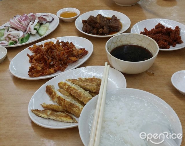 This was recommended by my friend and so I decided to try it. We had the salted vegetables, stir-fry dou miao, salted egg, stewed duck, minced meat, and 2 bowls of porridge for $17.30. The dou miao was a bit hard to swallow despite chewing many times and it was plain-tasting. The salted vegetables went well with the plain porridge, so did the salted egg. The stewed duck was tender and delicious but the gravy was slightly too salty for me. The minced meat also went well with the porridge because of the contrasting tastes. It was a comforting dinner during a cold and rainy day.…查看更多