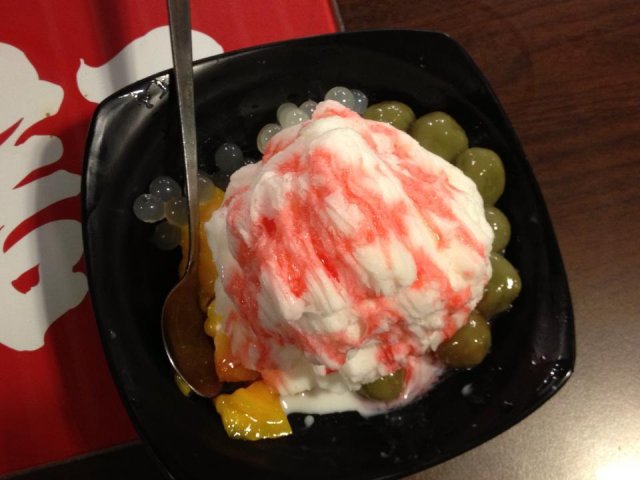It's dessert time..!This glutinous rice bacll is super big.It is a bit sticky,and it taste nice with the sauce and the peanut..!Highly recommmended.The peanut is really nice.This is yuan yang.The black color is the black sesame paste.the white color is the almond paste.They taste nice..!Can eat them sepeartely or mix together before eat.Both also taste nice..I really like it…查看更多