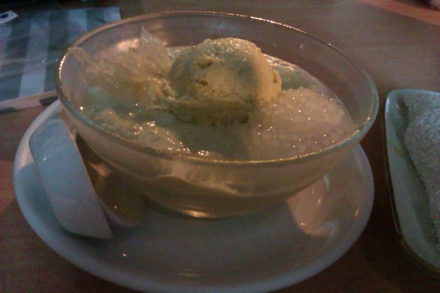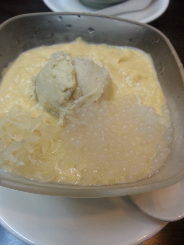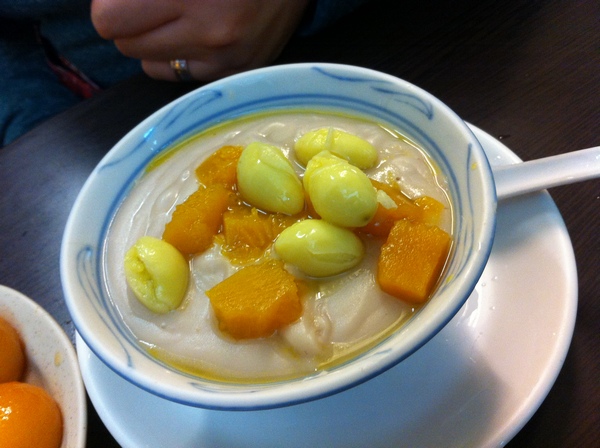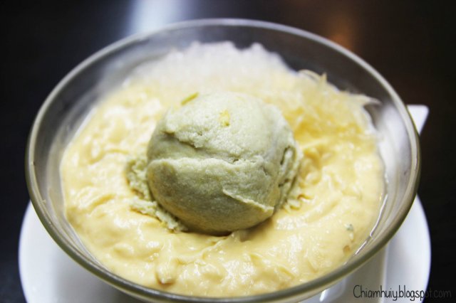 We were here on a weekday night after dinner and it was crowded and we waited 10 minutes before we could get a table.It is our first time here and they have a wide range of hot/cold desserts including fruity shaved ices and kuehs.For every $30 ordered there was a complimentary bowl of black sesame paste which was rich and slightly bitter.My favourite would be the steamed pumpkin cake which is soft,moist and rich.Another not to be missed item is the durian dessert which i did not try but my sister said it was creamy and rich with just the right amount of sweetness.…查看更多