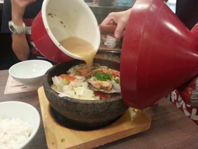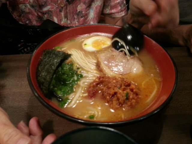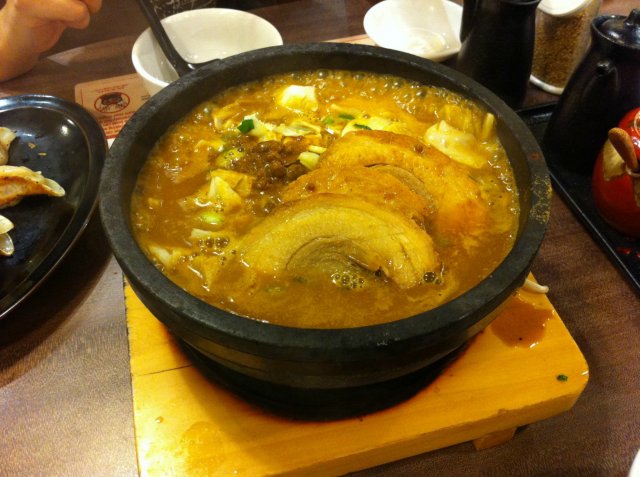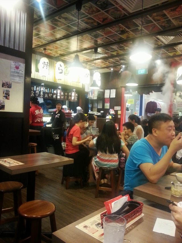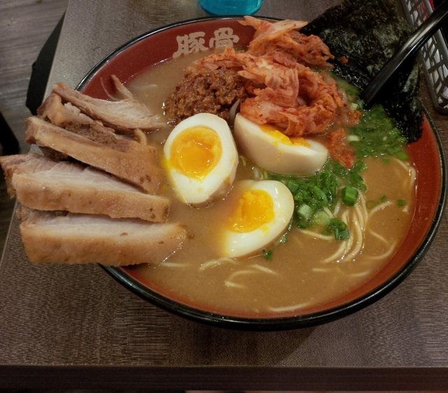 This weekend was back to Novena but this time visited this restaurant which located at 2nd level. The RED colour stucture design cannot be miss. The furniture is quite traditionally designed. Started to order curry ramen and Karamiso spicy ramen. The wait was not long and every table also have free eggs to starter to pass time. What a surprise with the ramen serving with a funnel like shape on TOP of Claypot. 😬😬😬Refer to photo. After waited for another 1 mins, both ramen is ready and dame HOT. The toppling came with a lot of vegetables, 2 slide of Chao Siew and sprouts. The Chao Siew is very thick compared to other restaurant which I estimated about 200%. LOL. The soup is very fresh and thick texture. The spiciness would have been more spicer possibly will be perfect for me too. Add on 2 more side dish, Gyoza. The meat well cooked with skin is thin and crispy too. Not so special for this one. Overall is good experience and will come back in future. …查看更多