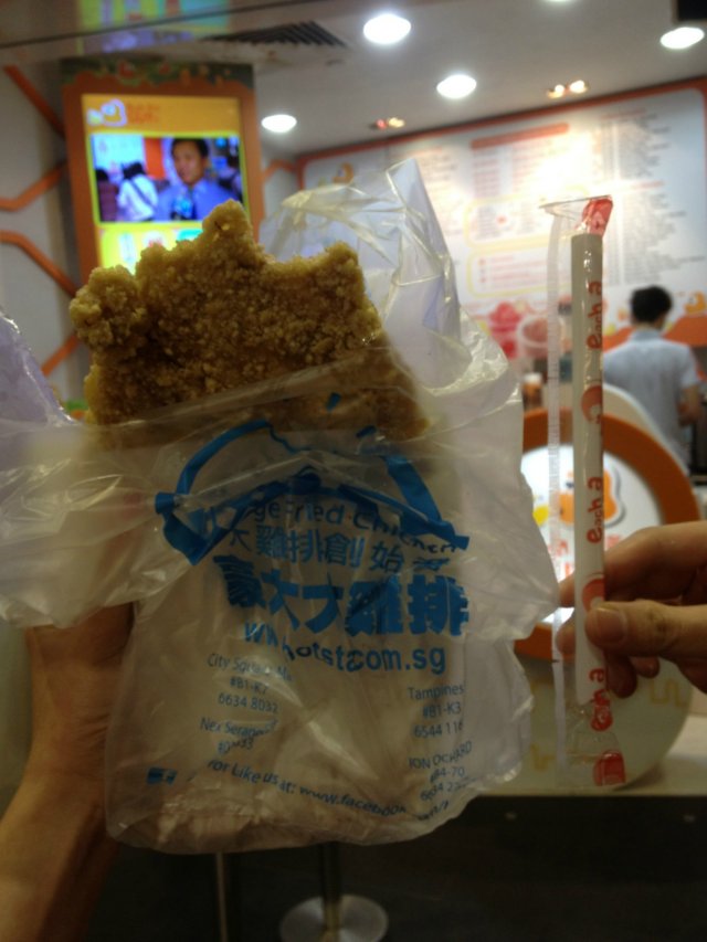 Hot-Star Large Fried Chicken 豪大大雞排 origins from Taipei, Taiwan and is well known for its huge piece of fried chicken. The chicken is fried upon order to maintain the moisture in the meat, while outside is super crispy.Currently there was a 1-for-1 promotion for the signature large fried chicken at $4.90 using the ION mobile application till 31 July 2016. One can select the flavour topping for the fried chicken. I had selected seaweed and garlic, which both smelt very good. The chicken was juicy and was not overwhelmed by the flavouring. Beware of the bones while eating. There was huge bones in the cutlet.…查看更多