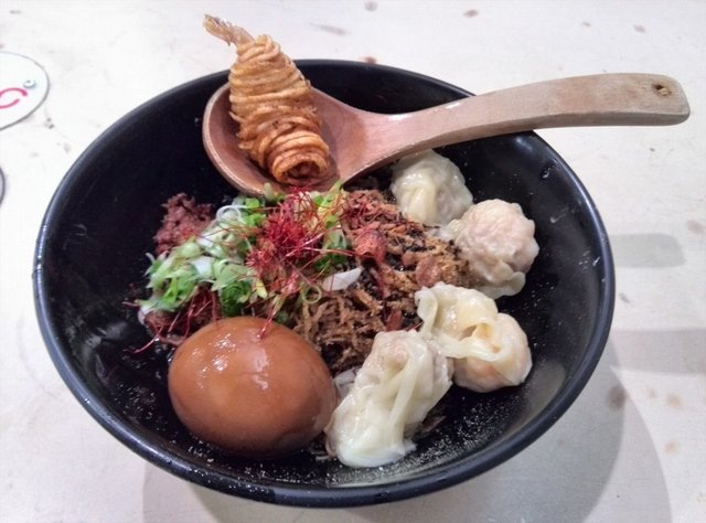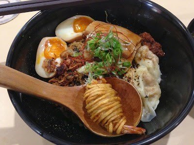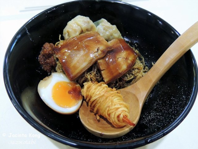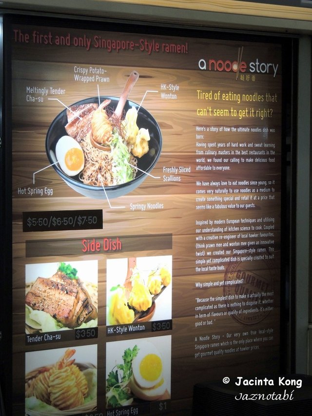 A Noodle Story 超好面 located in Amoy Street Food Centre has differentiated itself by being the first and only Singapore-style ramen. This is the brain child of two Shatec trained friends who decided to create ultimate noodles dish through a combination of modern European techniques and Asian flavours providing gourmet quality noodles at hawker prices. A Noodle Story has announced on Jan this year that due to increase in operating cost (rental and cost of raw ingredients), their prices have increased by 50 cents. Hence, please note to increase the prices by 50 cents for all the prices stated in this blog post. Singapore Style Ramen $6The Singapore Style Ramen $6 consisted of Noodles, Hot Spring Egg, Cha Su, Potato Wrapped Prawn, and HK Style Wanton topped with scallions. The soup was served separately in a small bowl. The noodles were very springy and were similar to mee kia. Singapore Style Ramen $6Potato Wrapped PrawnCha SuHot Spring EggThe noodles were cluttered together in a lump making it hard to eat. The chilli added at the side lacked spiciness and fragrance and was too dry. The ingredients such as the Potato Wrapped Prawn, Cha Su and Hot Spring Egg were quite good whereas the HK Style Wanton was ordinary with nothing much to shout about.As a whole, the presentation and concept of this Singapore Style Ramen was unique. It looked real good. But taste wise, it was not mind blowing. Nevertheless, I still must say that I admire the spirit of these two young men for their innovation in creating such a dish. Moreover, the effort taken to arrange the ingredients in the bowl although this was not a restaurant. http://foodiefc.blogspot.sg/2014/01/a-noodle-story-amoy-street-food-centre.html…查看更多