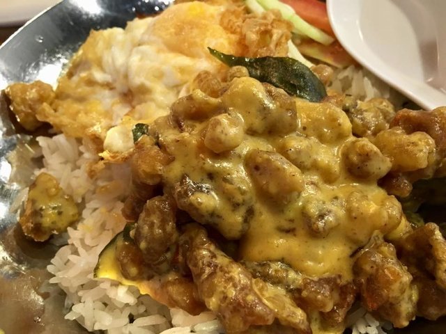 See my full review & photos at = http://chefquak.com/2015/11/06/s6-50-salted-egg-chicken-rice-mini-wok-zi-char-迷你锅煮炒-shaw-basement-food-republic-on-6nov2015/went to watch “The Intern” at shaw lido with a friend today on 6.11.2015. ^^i really enjoyed the movie. super! :-)after movie, it was 2.30pm – ish.we decided just to get a bite at the food republic at basement of shaw house. :-)i had previously –tried the brisket king 牛腩大王. it was quite good but expensive. well so are the other stalls. also ex.& the quite below par toa payoh lor 7 teochew fishball noodles.was going to settle for either roast chicken rice or roast duck noodles stall, but saw this mini wok zi char 迷你锅煮炒.there were many dishes on the photo menu. i would not mind the pepper beef or the pork onion rice.anyhow we saw this salted egg chicken rice = no.1 seller! must try!so try we did.& it was good leh.this is a very professional planned instant dish delivery, very quick turnover & consistent good standard.deep-fried chicken pieces were pro-done, fried egg too.the instant “chef” put the chicken pieces into the hot oil, the helper placed the rice, fried egg & some pickles on the aluminium serving wok on a tray for easy handling. then the chef fried the heated deep-fried chicken pieces with the salted egg sauce, probably took 1 min & then placed on top of the rice. voila!S$6.50 was ok. quite enjoyable! ^^very enjoyable movie, meal & chat with friend.…查看更多