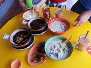 Tiong Shian Porridge is located at a corner coffee shop just a couple of minutes walk from China Town MRT and since it's right at a traffic junction. You will have to endure the carbon output from passing vehicles. Porridge is usually to be taken for breakfast or supper as its taste tends to be more subtle, and yet, wholesome. But not to this Cantonese-style congee which has become more flavorsome with pleasant briny taste by adding other ingredients in it, for instances, red meat, fish slices, seafood (bite-sized), and/ or eggs, to your preference, that can now be eaten anytime of the day!This porridge stall opens daily from 8am to 4am! So you can eat this, breakfast, lunch, dinner and supper!I think that their prices are fair and reasonably priced. At this coffee shop which can get really crowded at night, it can also get quite stuffy. Hence I decided to drop by in the morning around 10am. I found an empty table and made1. Claypot Frog with Ginger $8The aroma of the frog was very sweet and fragrant. For $8, you get a whole frog and it's a decent portin of meat for 1 person. The frog meat itself was tender and well mariated with the ginger sauce. The sauce from the claypot also doubles up as a seasoning for your porridge if you prefer a more seasoned porridge. Drizzling the claypot sauce over the porridge gave it a sharp and refreshing aroma. To eat this, you’d have to combine each mouthful of frog with a bit of porridge so the different flavours and textures would all explode in your mouth.2. Porridge with mixed ingredients and century egg $4.90This is probably the first porridge I've eaten with so many ingredients all in one mix. There was pork, kidney, intestines (both fried and poached), cuttlefish and century egg. Every spoonful of porrdige had some of these ingredients. I think their proportion of rice to ingredients had to be 50/50! The porridge was very tasty and I didn't feel thirsty after the meal, so maybe they were gentle on the MSG or the porridge was naturally seasoned from the variety of flavourful ingredients. For $5, I think this is worth and recommendable bowl or porridge not to be dealt lightly!! 3. Fried Pig Intestines $6Not sure why, but Cantonese porridge often pairs with fried fritters (fried dough sticks – 油条) that savours marvelous experience of having a porridge meal. But here at Tiong Shian they don't just offer fried fritters but also fried pig intestines!These pig intestines were fried till they were super crispy like potato chips. I couldn't even tell that they were pig intestines. The make a good crunchy substitute for your porridge.4. Minced Pork Porridge $4Tiong Shian does their proddige with the right consistency of being fairly smooth, light gluey with enough moisture. The temperature at which the porridge is served is also perfect to be eaten despite our hot and humid weather. They were very generous with the minced pork ingredients. The porridge itself was very tasty but if you wanted more oomph! Go for the mixed ingredients porridge!For 3 pax, we ordered 3 bowls of porridge, 2 frog claypot and a side of pig intestines for breakfast. I don't normally choose to eat porridge and this is probably the only time in the whole year I'll eat porridge but the porridge actually tasted good enough for me to want to come back again!Verdict : 1) Prices were reasonable 2) Their porridges were not heavily seasoned so you could just adjust the taste with additional pepper or light soy sauce to your preferences. 3) Convenient location next to China town mrt 4) no waiting time 5) Simple pleasure for a reasonable price…查看更多