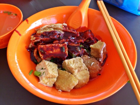 This Yong Tau Foo stall at Clementi Food Centre opening hours are quite strange. They only open at 1pm and soldout before tea time.There were long queue before opening time and i was one in the queue. I had chosen about 10 items and ordered dry with sweet sauce.The sweet sauce tasted very good. It was not too sweet or too salty, just right with fermented bean taste.The yong tau foo items tasted good and fresh. They had deep fried the items. The outer layer was mild crispy and inside moist. However the soup was quite peppery which i did not like.…查看更多