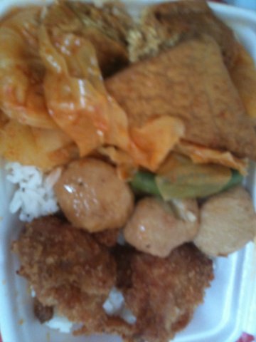 Today i ordered these for lunch , as economic rice is the usual i would eat for lunch.I had deep fried chicken, curry vegetables as well as braised egg tofu.I had a well mix of everything in my rice.I queued for about 5 minutes as there were quite a number of people during lunch.The curry vegetables is slightly soft and it was not too spicy, i like the curry taupok, upon biting, the curry gravy drizzled out nicely in your mouth.The rest of the items tasted average too.…查看更多