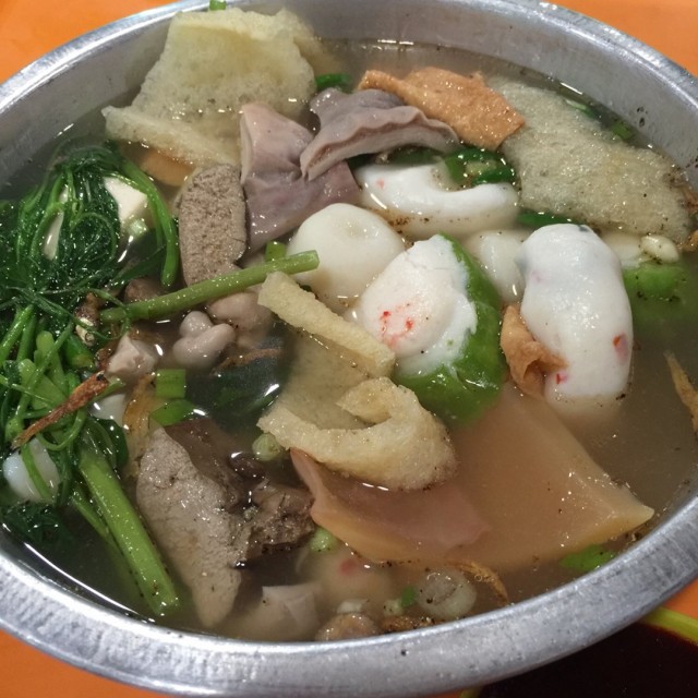 While most of the stalls in Bukit Merah View Market and Food Centre is or have already done for the business day, Soon Li Yong Tau Foo has just started busying preparing for the start of business. Stall is manned by a husband and wife team who are notorious for their short tempers. If you are asking too much questions on the opening timing during the wait or slight slower in ordering or blocking their passage way, you will get the ferocious stare on their face.Besides their unique opening hours from midnight onwards, Soon Li Yong Tau Foo attracts customers with their wide range of items, about 20 over items. Special items includes, pork belly (roasted and non-roasted) meat, intestines, stomachs, pig skins and even fish maw.The wait for Soon Li Yong Tau Foo to open is heart throbbing and unveils all sights of being a true kiasu Singaporeans. The scene was surprising to me when Soon Li Yong Tau Foo started to light up their business signage and everyone rushed into be in the first in queue. It looked as if we were there for free food but in fact its not. Everyone has to crowd around the limited shop front to grab the items. However, the trick is to team up, getting one of us to queue up and the order to pick the items. After picking the items, you have to put the bowls on the top of the rack. The first in the queue will get their food to be served first.Every bowl was placed in a traditional huge metal bowl.Broth was really good, making up of ikan billis and very flavourful with the taste of pork innards. When it comes to the ingredients, they are very fresh as they were made daily. Pig intestines and stomach were all well handled and they went in the soup without letting any foul smell. Cut green chilli and ikan bills were thrown in, giving the soup to a whole new level. Items were meticulously cut into bite size chunks. Just look at the size of the bowl, its bigger than a man's hand.The bee hoon and noodles were cook to perfection and drench with sauces, a mixture of chilli and sweet sauce. Dark brown crispy fried pork lards were mixed in to enhanced the plain taste. Yummy! Separate sauces were given for us to have the food items dipped in.If you are having some midnight cravings and have time to spare, you might want to have a good experience here. Frankly, I never had such anxious experience to queue for food and this experience was really something I had never think that I would ever do, its just too crazy. Nevertheless, I will not stop me from going back again. It's really an interesting supper experience.Review from http://www.umakemehungry.com/2014/12/soon-li-yong-tau-foo.html…Read More