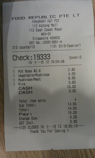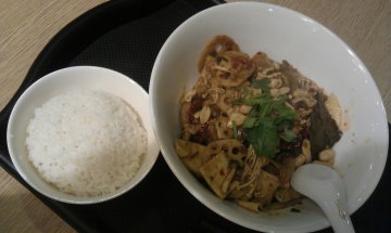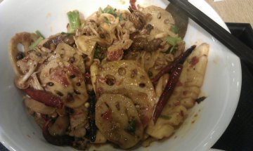 This is a new store at Food Republic in Katong Mall.There is a chinese cook specially skilled to mixed the 'ma la' and dried chilli recipe with my selection of vegetables.The taste of the spice enhance the ingredients when you crunch.The 'ma la' is surprisingly manageable, which the level of spiciness is not too hot to sweat you out. You may request the cook to lessen the spiciness to your liking.Well, they measure your selection by weight. One important key point, during selection, group your selection of same price type into one basin, another price type into another basin. Do not mix difference price type into one basin!!!…查看更多