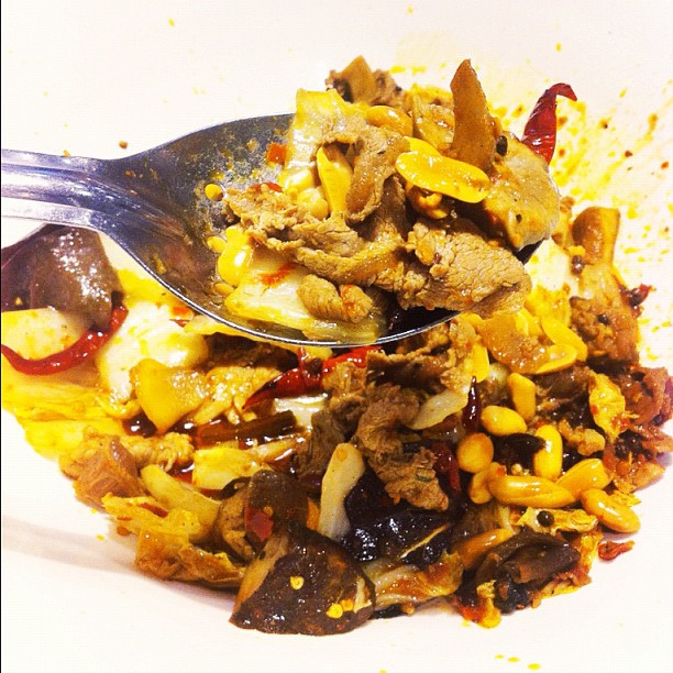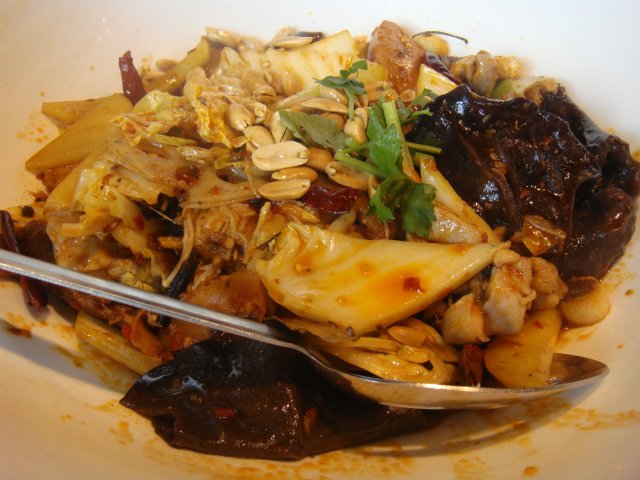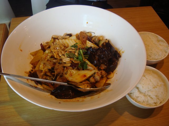 It is a rather known stall for its Fragrant Hot Pot, located at one end of the food court. As it is almost 9pm, there is not much selection in the display shelf left. Looking at the prices on the menu, I feel that it more on the high for a stall in food court. One selects the items from the shelf which is chargeable from vegetables $1.40/100grams, to mushrooms $2.60/100grams, to meat $3.20/100grams to seafood $4.50/100grams. A bowl of rice is priced at $1 per bowl and soup base is priced at $3 to $6 depending on the amount of selected items. For the small amount of items which I choose to go with a bowl of rice, I am charged $9.95. I have selected it to cook in a less spicy way, which tastes just right for me. Like the topping of peanuts in the dish, which give an additional crunchy to the dish. Beware of the pepper corns which have a quite effect on the tongue. …查看更多