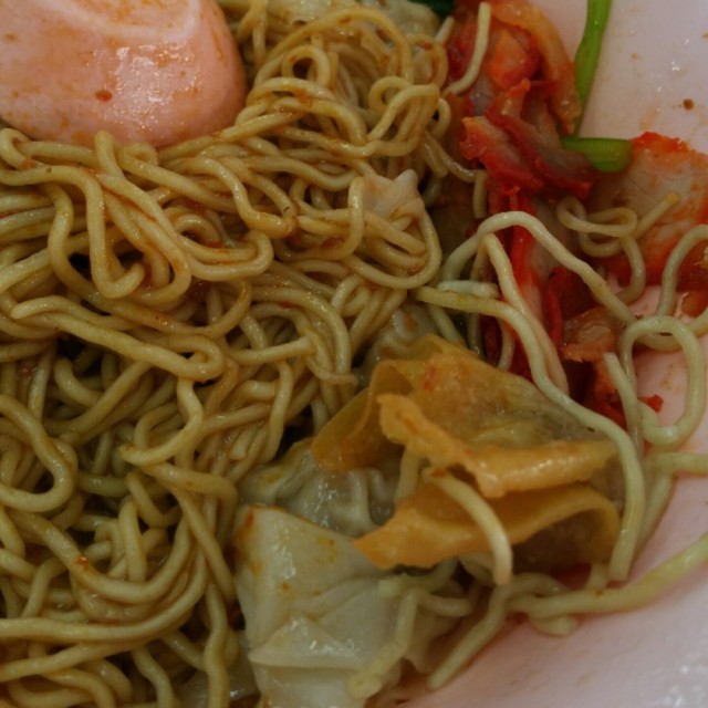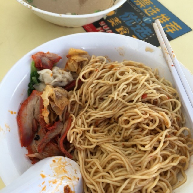 This coffeeshop is solely owned by Fei Fei Wanton Noodle, with a small drink stall at the corner. I was there rather early and it was not packed.It looks really plain when it was served originally and the ingredients were all at the bottom!This is after mixing. There were 2 steamed wantons, 2 fried wantons, char siew and vegetables. I prefer the egg noodles with plain sauce compared to the dark sauce ones. As I have a low tolerance for chilli, I requested for it to be served separately, otherwise they will just put it on your spoon. The chilli was not too spicy and I mixed it together with the noodles if not it would be kinda bland. I wonder what's the hype about this wanton mee stall as the ingredients were all really average and the wantons were so small! Also, the texture of the noodles were a little on the hard side.There is actually another Fei Fei Wanton Noodle stall opposite and I'll give that a try the next time I'm around the area. …查看更多
