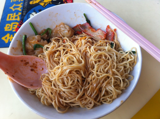 It's a different noodle that i seldom taste anywhere around singapore, their mee kia taste like home made noodle than the usual mee kia.The chillies and it's sauce make a good combination out of it's noodle.The fried wanton and charsiew both taste a little salty,which i tasted the charsiew follow by wanton which are even saltier . The unquie thing about fei fei wanton mee was they don't serve the soup unless u return to them with your bowl which before use to contain the wanton noodle. Lastly from my opinion, i think this wanton mee is still worth the price. Even better if they can improve their recipe on the fried wanton and charsiew.查看更多