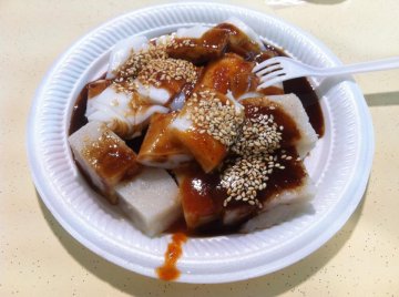 Took my dinner at Bedok, we were still looking for some finger food after that. Noticed a stall famous in selling Chwee Kueh, sadly they were sold out. Then we changed our mind to have Chee Cheong at the end. From what I know, there are generally two types of Chee Cheong Fun. The first type was the common one taken out from steamer, whereas the other type was typical Hong Kong style which filled with luxury ingredients such as Char Siew or Shrimps. Darkening sweet sauce and some spicy chilli poured on the plate, then a generous amount of sesame seeds were added. No doubt both of them were freshly steamed, but I can tasted they had already been made and reheated. Combination was priced at $2.50, two rolls of Chee Cheong and one piece of Carrot Cake. Pretty cheap for snack after dinner, it was filling portion for two persons.…查看更多