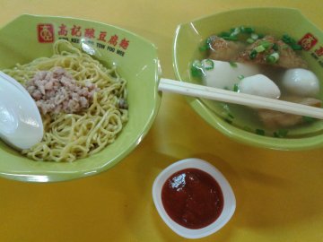 Quite a famous yong tau foo stall, I have tried this a few times and found it generally nice to eat. The noodles are springy but a little too hard and would have been better if boiled slightly longer. The noodles are paired with mince meat and mince meat gravy and taste really fragrant and a good combination. The soup however tasted a little sweet probably sugar or msg was added into the soup. But the tau foo in the soup was good, soft and juicy and dipped in the chili the taste of the tau foo was heightened
