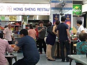 Hong Sheng Restaurant has been there for more than 40 years , located in a coffee shop just within 10 minutes walk from Braddell Mrt. It has been the famous Zi Char in the Toa Payoh neighbourhood for their dishes & relatively cheap prices.Their operating hours is 5pm to 10.30PM , Tuesday to Sunday only.We visited on Saturday at around 6PM , we was quite lucky as there wasn't any queue!! Usually it can be quite crowded especially during the dinner time. Some of our friends has experience queuing for an hour hence my suggestion is to go early !Here are the dishes we order for 5 Pax,1) Sauteed PrawnPrawn was big! The sauce of the prawn was good but sadly prawn was over cooked hence the shell was stick to the prawn meat. :(Portion ordered : Small2) Prawn Paste ChickenIt one of their famous dishes , the skin was marinated with prawn paste flavour and nicely fried till light golden brown. It was cripsy at the outside and the meat was tender . Portion Ordered : Medium ( total 10 pcs )3) Fried riceThe fried rice has the home cook taste which is different from most of the zi char i had ate.Portion ordered : Medium4) Braised TofuI have never seen any other zi char with so many ingredients !!! Inside the braised tofu it has Prawns , Sotongs , mushrooms and the best it has my flavourite pig stomachs !!! Portion ordered : Small5) Pork ribs This is also one of their famous dishes, Pork Ribs ! Seriously it fabulous !!! I have never tasted any zi char pork ribs as nice as this. Their sauce for the pork ribs is unique , a taste which words couldn't explain.... it taste abit sour, not sweet and has some rice wine taste. Portion ordered : Small 6) Sambal Kang KongThe sambal taste is really aunthetic , it has the "hei bi hiam" taste.Portion Ordered : Small7) Seafood Hor FunThis is their super famous dishes , i would definitely go back for this again. The amount of prawns , pig stomachs , sotongs & meats is really generous ~~ It has the aunthentic "wok" taste which you hardly can find in Singapore.Portion Ordered : MediumTotal cost for all those dish was just $74!…查看更多