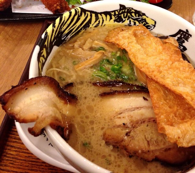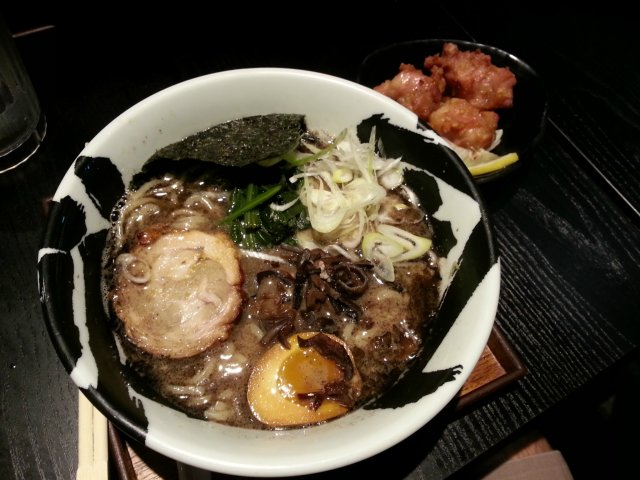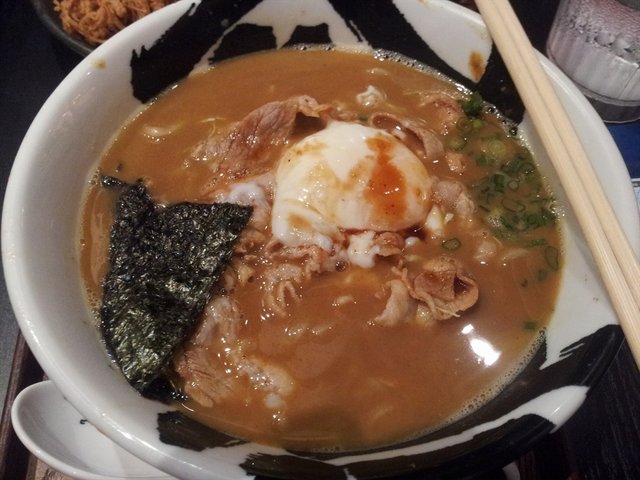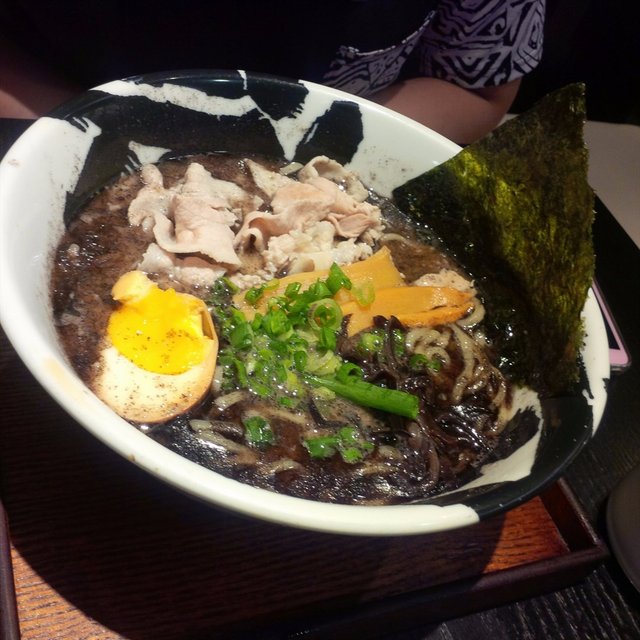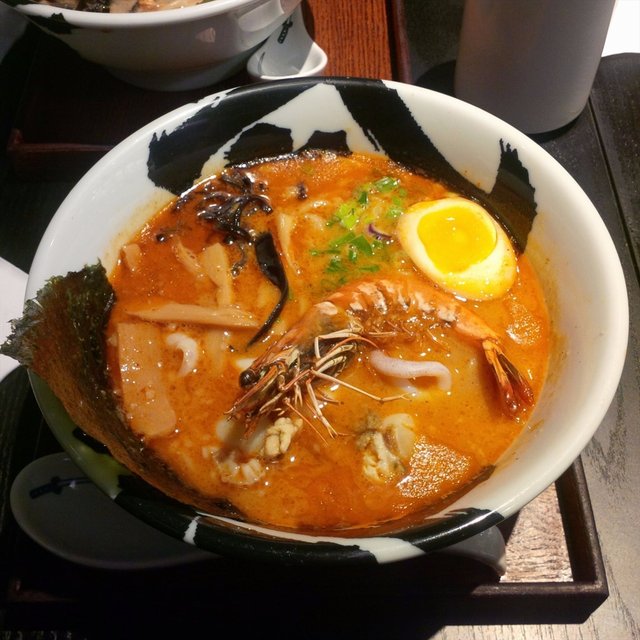 After a hardworking day of volunteering work on a Saturday morning, we decided to reward ourselves a little by having a ramen meal at the nearby mall, hence Menya Musashi it was! When this outlet first opened, there were always long queues, so the I-will-not-queue-for-food me have yet to try it till now.First ramen to be served was the Black Shabu Ramen (SGD$14.90), using a variety of black sauce, garlic and onion, giving it a heavier flavor that is nonetheless very aromatic. The shabu pork was rather tender, making for a satisfying but rather average ramen meal, served with the essential flavored egg, bamboo shoot and spring onion.The White Chashu Ramen (SGD14.90) features the signature white tonkotsu broth made by boiling a substantial amount of pork bones, giving it a rich and creamy taste. The succulent slices of chashu pork was the highlight of this dish naturally, infused deliciously in the tasty broth.I chose the Red Seafood Ramen (SGD$15.90), a pool of supposedly spicy soup base laden with lots of seafood - prawns, squids, scallops, flavored egg etc. The soup was not spicy at all, so I kept dousing Japanese red chilli powder onto it; the noodles were rather limp as well. While it made for a passable bowl of ramen when one is hungry (and I was), I have had better ones elsewhere.For full review and more detailed information, please refer to :http://thearcticstar.blogspot.sg/2015/05/lunch-at-menya-musashi-raffles-city.html…查看更多