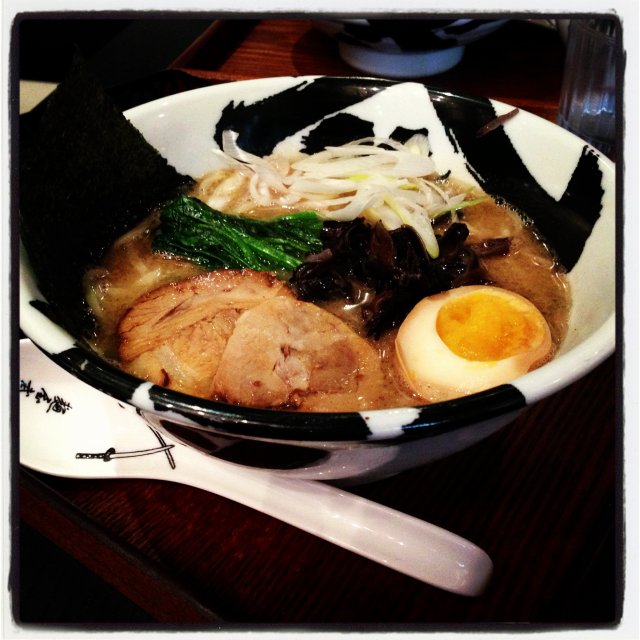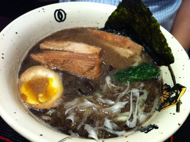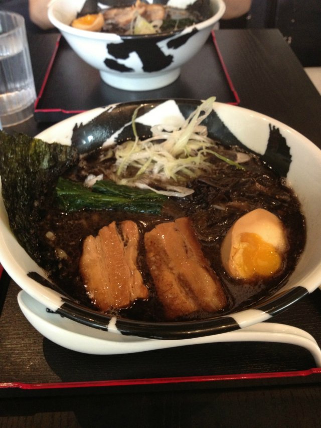 I visited slightly later after lunch hour, so the queues that usually snake from this outlet was gone and I was able to get a seat very easily. This ramen joint serves different ramen soup bases, intuitively named after their appearance: black, white and red. I decided to try something exotic and went for the black soup base, which is essentially made from black garlic. I ordered their Black Chasu Ramen ($12.90). The ramen noodles were sufficiently springy and chewy, and they were topped with a variety of toppings such as seaweed, thick chasu slices, wood ear and egg. The ramen soup base was a hearty thick black coloured base which I found a little too oily and garlicky for my liking, but nonetheless went well with the noodles and ingredients provided.…查看更多