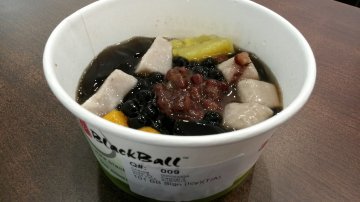 Pass by this dessert stall and saw the long queue and decided to give it a try. I have bought their BlackBall Signature under the take away packaging. The black balls,including the tapioca balls, yam balls are all very chewy and not too sweet. The black jelly inside, which taste quite similar to the grassjelly, is also not too sweet too. The icy texture does not bring much special taste to it, just like normal ice kachang. At the price of $4.95 per bowl, is cheap and affordable. The stall is neat and staffs are quite pleasant and good.…查看更多