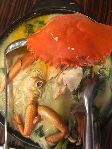Honestly the food here is good. Of course it's not cheap but not crazy-Jumbo prices either. The items that we're oh-so-good were:1) Crab in Broth - we paid for extra Beehoon and soup and it's super worth it! The broth was thick with favour and the crab, tho not huge, was fresh. The flesh came apart nicely and easily. Indication of freshness to me. Easily best dish of the night. 2) Guinness Pork Ribs - very well marinated ribs with excellent taste. Doesn't taste like Guinness at all. Very very tasty dish. 3) Broccoli with Beancurd Skin & Mushrooms - it's essentially a very simple dish but don't very very nice!4) Creamy Butter prawns - it's really prawn in thick salted eggs sauce. What's NOT to like?! Large fresh prawns in savory sauce! Makes you wanna scoop up all that sauce after you're done with the prawns. Other dishes are decent but the above of special mention worthy. Will be back again. :) …查看更多