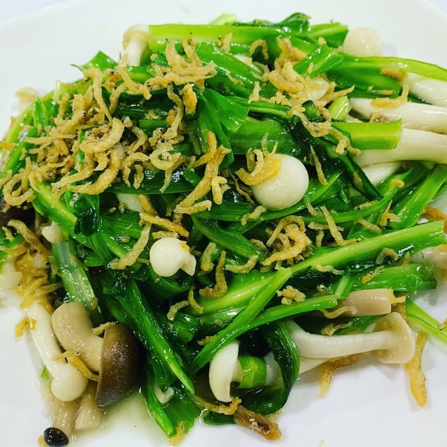 Bunameiji with Garlic Chiva (松菇青龙菜)