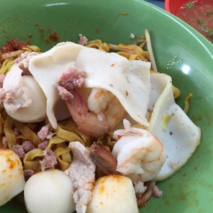 Normally this place has a very long queue. When it first open here in Marine Terrace, I was told I had to wait 40 mins and take a number, this take up a lot of the coffeeshop tables, with customers waiting for their number to come up in the digital board. Now the digital board is gone but you still have to queue in front of the stall to put in your order and pick it up. There is still a queue but at least it free up the table for other stall customers.I was surprised on Wed breakfast time, there were only a few people queuing, so I decided to try the dry Mee Pok a 2nd time. I only wait 5 mins with 3 persons ahead of me. I ordered the $3 with additional $1 for fish dumpling. For extra $1 I got 4 more fish dumplings. For a $3 bowl of noodle you get 1 fresh prawn, 1 fish dumpling, 2 fish balls & a few slices of fish cake. The chilli sauce that coat the noodle has only the hot factor but no other taste ; no sambal fragrant. The noodle was stuck together in a big lump and need a bit of the tasty soup to loosen it. The soup taste like it has prawn stock, which gives the soup its sweetness. Maybe it is better to order the soup version at this stall. I still prefer the Dry Mee Pok in Siglap. See my earlier review http://sg.openrice.com/singapore/restaurant/commentdetail.htm?commentid=12553Read More