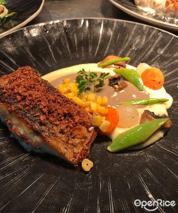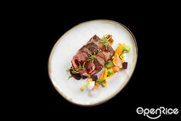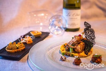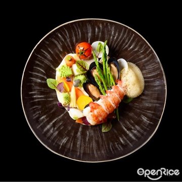 Aux Cèpes / Bar D'Atlantique / Beef Tartare, Capers, Gherkins, Shallots, Chives, Yolk & Toast / Hokkaido Scallops with Braised Leek, Sugar Peas, Buttered Lentils with Rich Scallop Emulsion / Maine Lobster Tail Poached In Paella Butter, Medley of Seafood, Lobster Emulsion