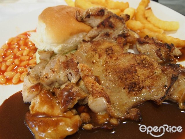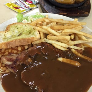 Was very much attracted by its tartar sauce the previous time I patronized this stall and thus, I'm back for its Fish & Chips. For a plate of $6 Fish & Chips, there's two piece of fish, garlic bread, baked beans, coleslaw, french fries and of course, its famous fruits tartar sauce. The fish is fried till golden crispy, outer batter is very crispy while the fish inside is very soft, suitable for all ages. The garlic bread was toasted lightly and the garlic smell and taste is very fragrance, really good. As for the baked beans and coleslaw, quite normal. The french fries is very crispy as well, much better as compared to other western food stalls. Its fruit tartar sauce is actually the killer. When accompanied with the fish or french fries, it gives a unique sour yet sweet taste. It goes well with the garlic bread as well. Other than Fish & Chips, they do serve dishes like Chicken Chop, Chicken Cutlet and even Siziling hot-plates as well. The price ranges from $5.00 to $10.00, which is very reasonable for the portion and quality of the food. Worth a try when you're in the vicinity. …查看更多