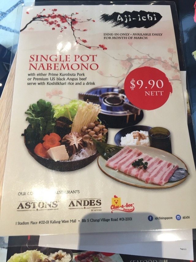 The restaurant was located at the second floor but hidden from the main walkway, unless one was on the way to the toilet or coming in from the outside. The restaurant was packed, especially with the young people. Based on the menu, the prices of the dishes looked reasonable and there was no GST or service charge. One had to wait quite awhile before being showed to a table. Remember to proceed to the cashier to place order and make payment once you are ready to order. I was really lost as the staff who showed me to my table did not tell me about it. Finally managed to get the attention of a staff who was serving food to the next, who in turn gave a short reply about going to the cashier, who turned out to be sher again. Looked like the place was short handled and all the available staffs were trying hard to multi task.Do remember your table number before going to the cashier to place order.Single Pot Nabemono ($9.90)Choose from prime Kurobuta Pork or premium US Black Angus Beef to shabu-shabu in a simmering hot pot. Comes complete with a bowl of our premium Koshihikari rice and a drink!The minipot came with a choice of soup bases, which I selected the milky pig's bone soup. It was quite rich and slightly oily too. Based on the cashier's recommendation, I ordered Kurobuta pork version which used black pig and tasted more tender and fatty. Before eating, dipped the cooked meat with Goma sauce (Japanese sesame dressing sauce) and raw stirred egg, which made the tender meat smooth. For drink, it came with green tea which I selected a cold version as the weather was quite hot outside. The drink was quite bland but cooled me down easily.Japanese Tatar Chicken ($3.30/ 3 pieces)Boneless coated chicken fried to golden brown and topped with homemade tatar sauce. The chicken was lightly coated, and tasted quite juicy inside. The tatar sauce was chunky with a hint of spicy taste.Overall the food was great and reasonable priced. However it was really very difficult to get the attention of the staffs here. Maybe the restaurant should place some notice on the table so that customers could understand the system at the restaurant better.…查看更多
