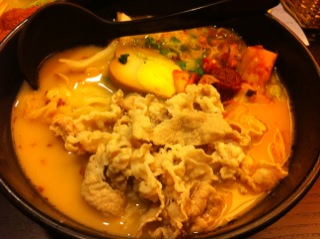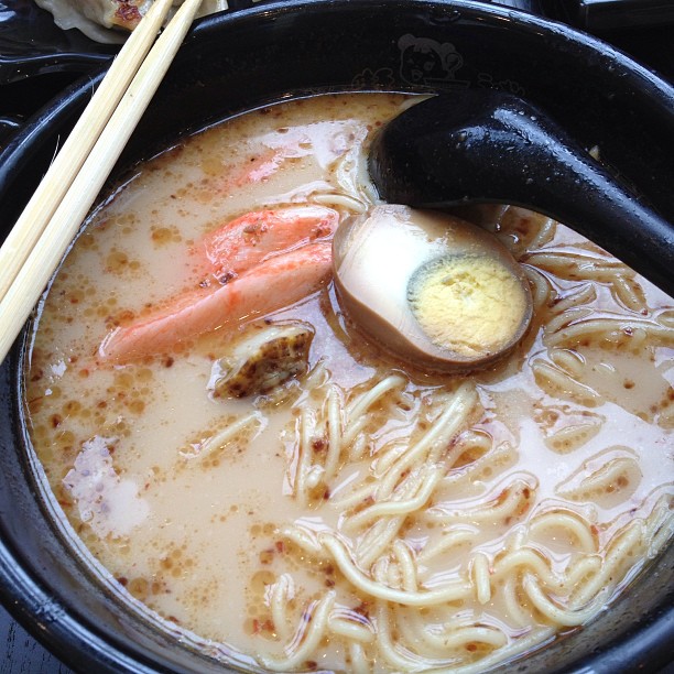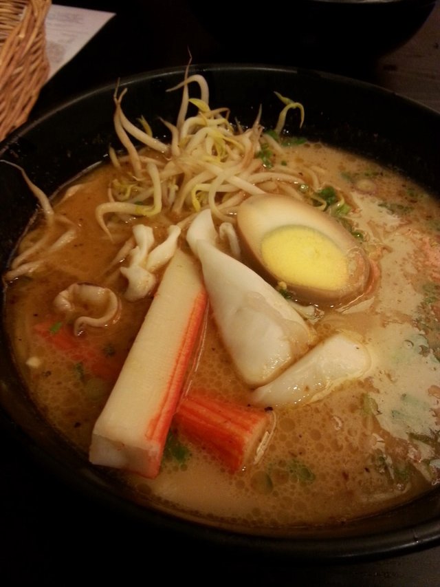 We had pork shabu tom yum ramen($14.90) & kumamoto ramen ($14.90) set with side dishes (choose one out of 12 items) cuttlefish & fish cake & 2 glasses of cold green tea. We ordered extra osaka ohsho cripsy gyoza. The gyoza fillings were very flavourful wrapped in a thin layer of skin. Best to dip the gyoza in vinegar before eating =) My hubby love the Cuttlefish very much as they were deep fried till very crispy! I love the fish cake as it resembles thai fish cake & are very yummy & chewy. Thumbs up for the side dishes!I love my pork shabu tom yum ramen. The pork shabu is sliced thinly, paired really well when eaten with the noodles & bean sprouts. I really don't mind eating this everyday