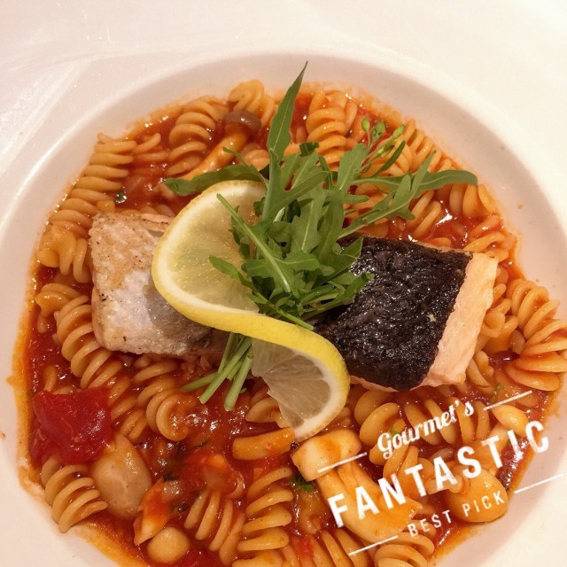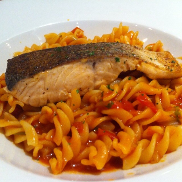 Salmon Fusilli Pasta in Thai Basil Sauce