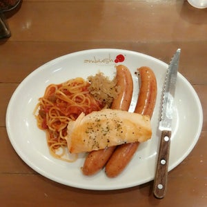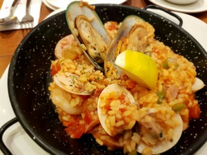 Sometimes my sister and I go on a foodie trip around Takashimaya Food Hall and one day we decide to head to Ambush's for a quick lunch to fill our belly before we start with the other food stalls.We ordered the Salmon and Mushroom Paella (~$10+) and although you cannot really compare with the authentic paella from Spain (they are not a Spanish restaurant), it still taste pretty decent, considering the texture and consistency of the rice.I like the salmon too as its well-cooked and blends in well with the rice. If eaten alone, the rice might be too plain for my liking.I went around mid-afternoon and so it wasn't too crowded, but if you are coming during the peak period like lunch or dinner, you may have difficulty finding seats because this place is quite like a self-service restaurant in the sense that you find your own seats and order at the counter.There is a high probability i would come back to try the other items on the menu or head straight for the paella!…查看更多