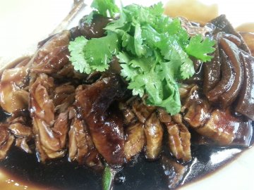 Though there was a queue but not particularly long when i was there. So, i did not expect the waiting time to be extremely long as the queue moved rather slowly. The main reason was not because of the amount of orders right before me but the Uncle worked in a slow manner. I ordered a basic plate of duck rice with a braised egg added for $3.50. It was served with the braised rice. And, it came along with a bowl of herbal-ish soup. The braised duck tasted a little tough but quite flavourful. The rice was cooked well in the braised sauce to give it the right flavor but the braised egg was just average. I did not particularly like chilli so i left it almost untouched. Its level of spiciness was pretty mild though. The soup has a comforting level of herbal taste which i enjoyed. I have tasted better braised duck than this so i am not likely to come back. …查看更多